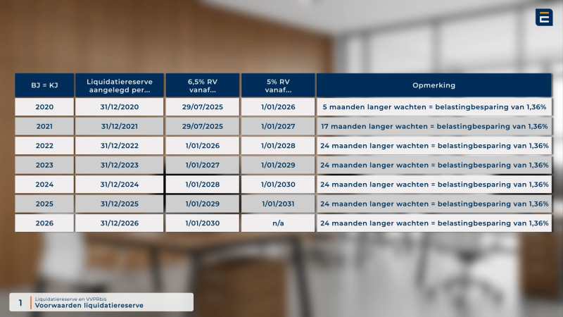 Liquidatiereserve vs VVPRbis, nieuwe regels.