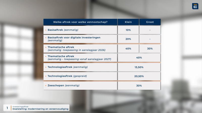 Vanaf 1 januari 2025 trad de hervormde investeringsaftrek in werking.